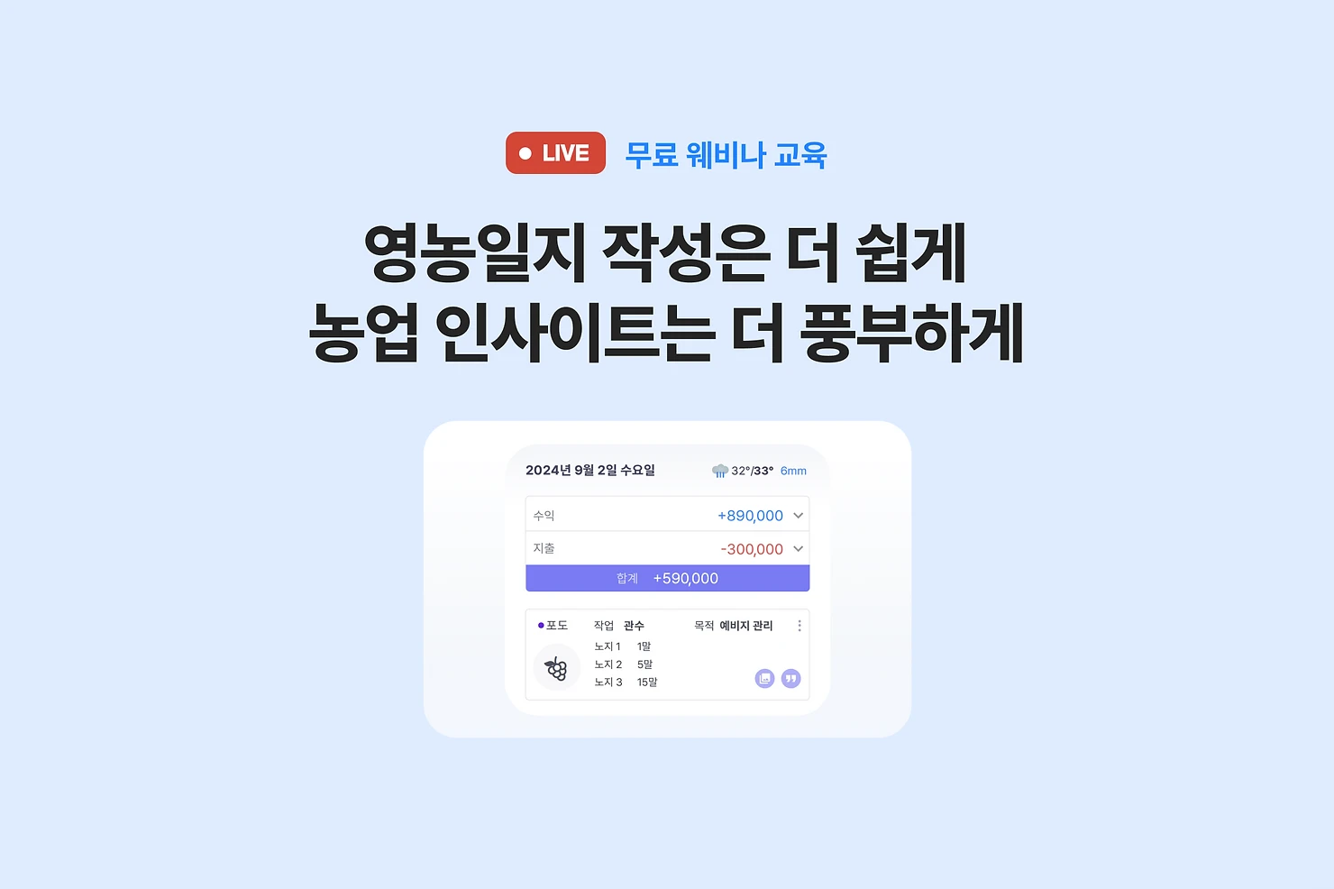 농업경영 웨비나ㅣ영농일지 작성은 더 쉽게, 농업 인사이트는 더 풍부하게