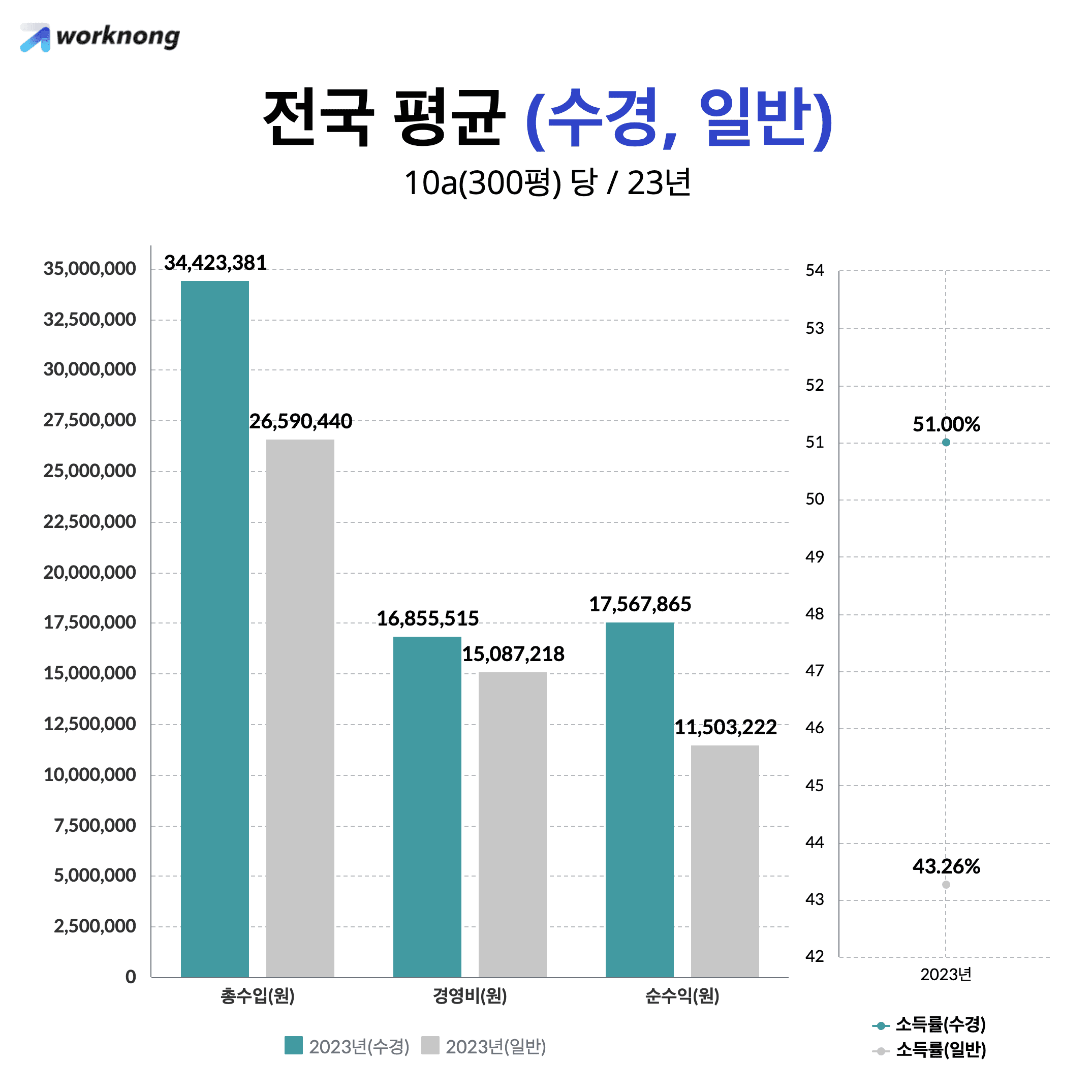 “일반 재배(토경)는 총수입 26,590,440원, 순수익 11,503,222원, 소득률 약 43.26%로 수경재배보다 낮은 편입니다.