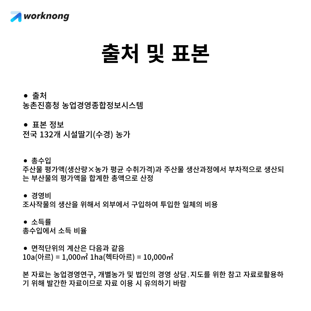 오늘은 예고드린 것처럼 지난 게시물에서 의문으로 남았던 수경딸기보다 일반딸기의 소득률이 더 높게 나온 이유에 대해서 살펴보겠습니다!