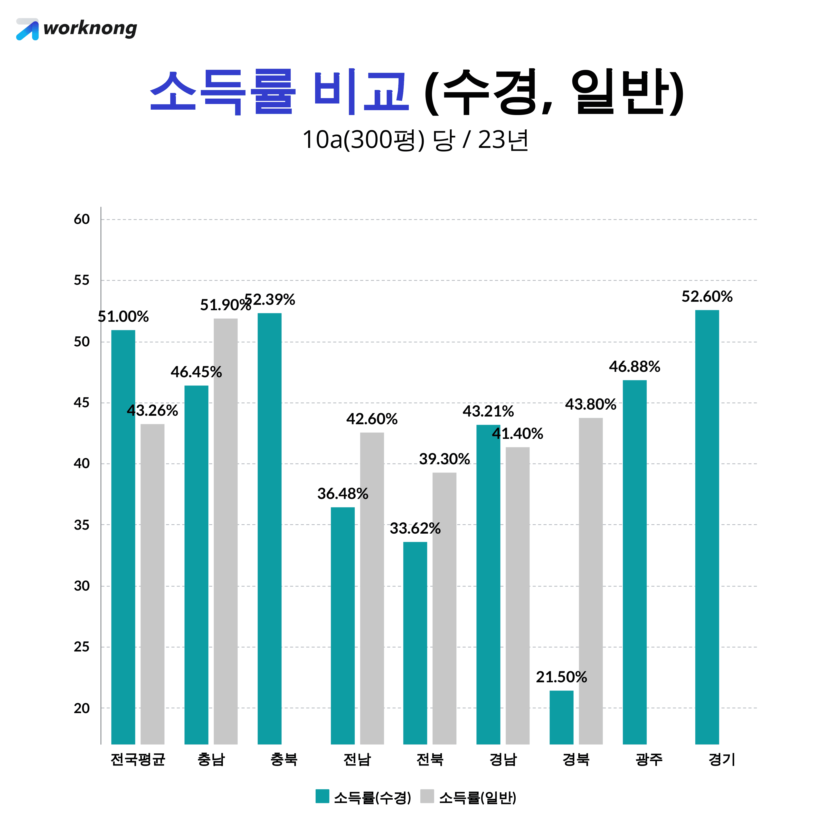 📊 경남을 제외 다른 지역은 일반의 소득률이 높다.