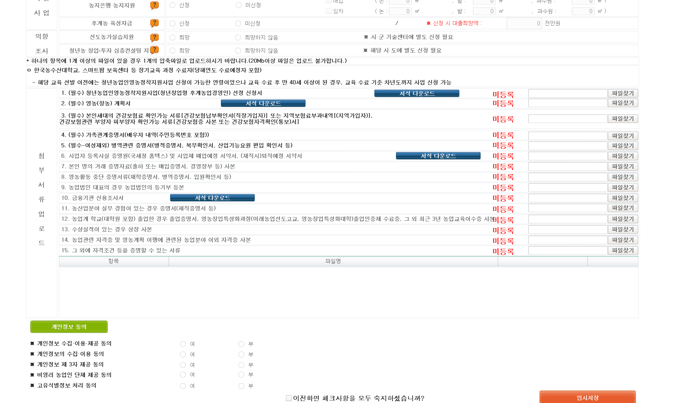 청년농업인영농정착지원사업 선정 신청서