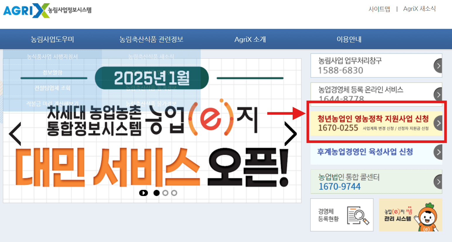 농림사업정보시스템(AGRIX)에 들어갑니다.