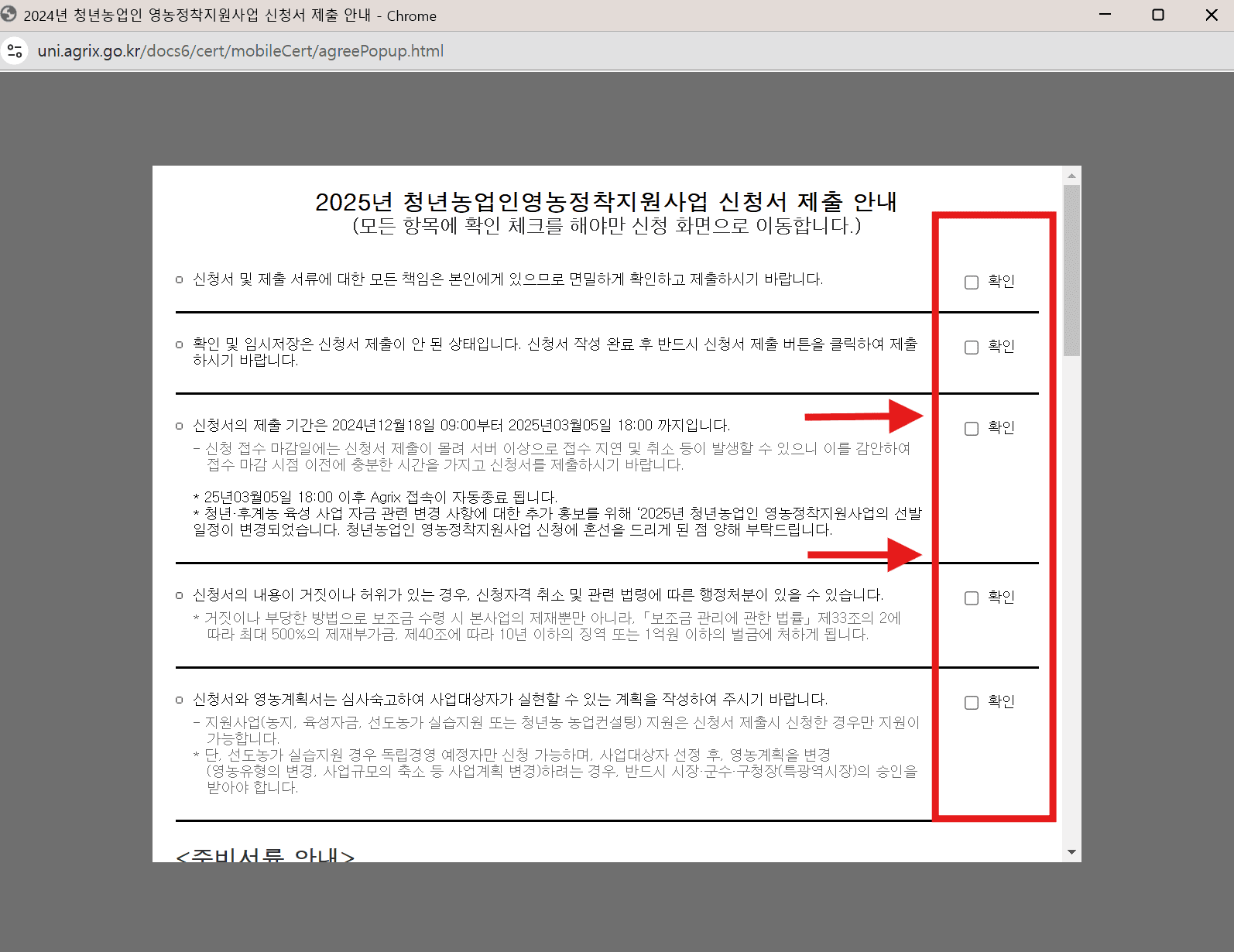 확인 항목들은 읽어본 뒤 확인을 클릭합니다.