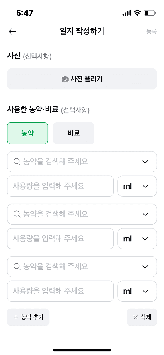 '내가 사용한 농약은 무엇인지, 몇 ml를 사용했는지 등 하나씩 입력해야 할 내용이 많아 번거로워요'
