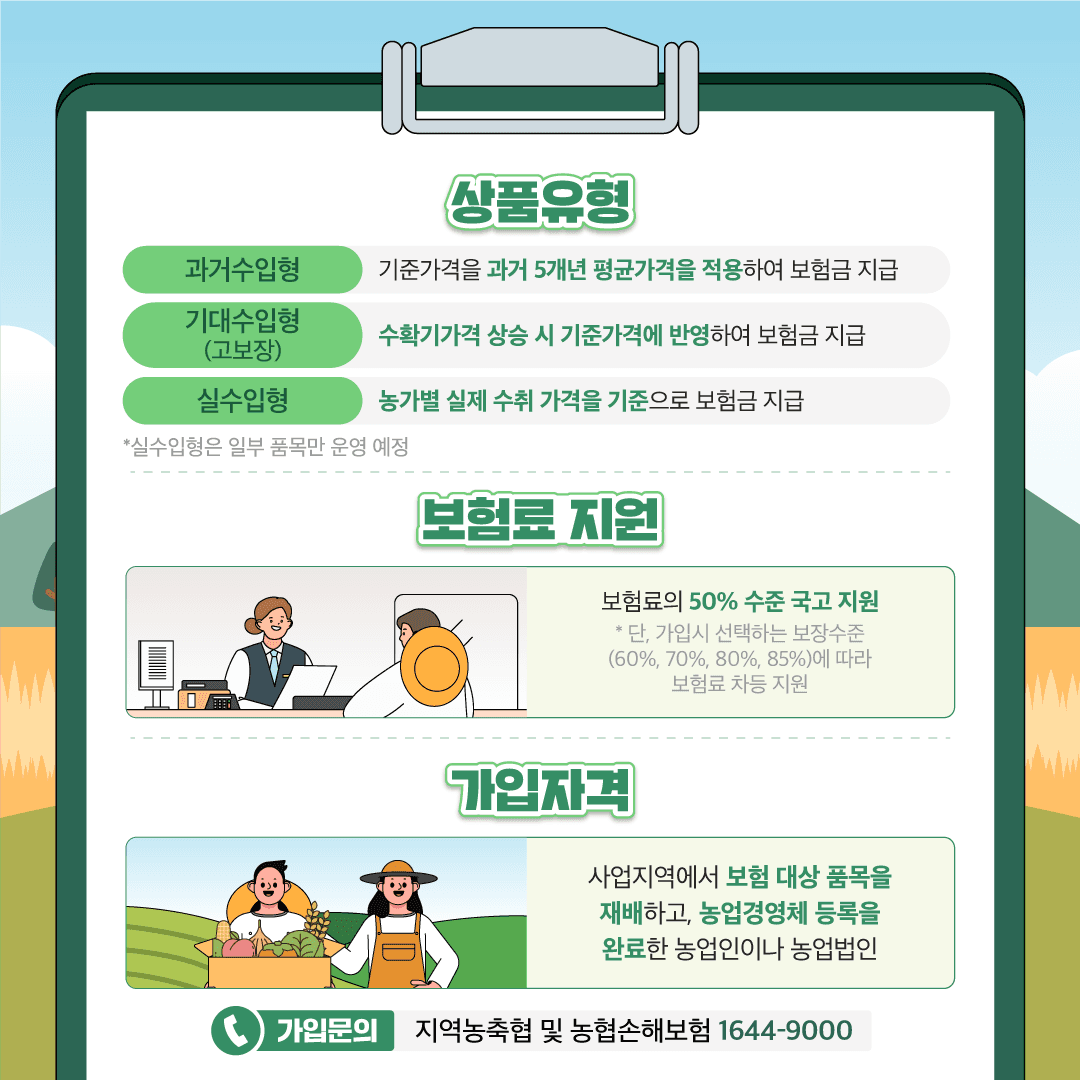 만약 이 보험만으로도 충분치 않다고 생각하는 분들이 계시다면, 더더욱 많은 관심과 의견이 필요한 때인 만큼 적극적으로 나서주시면 전국의 농업인분들의 삶이 조금 더 나아질 수 있을 것 같습니다.