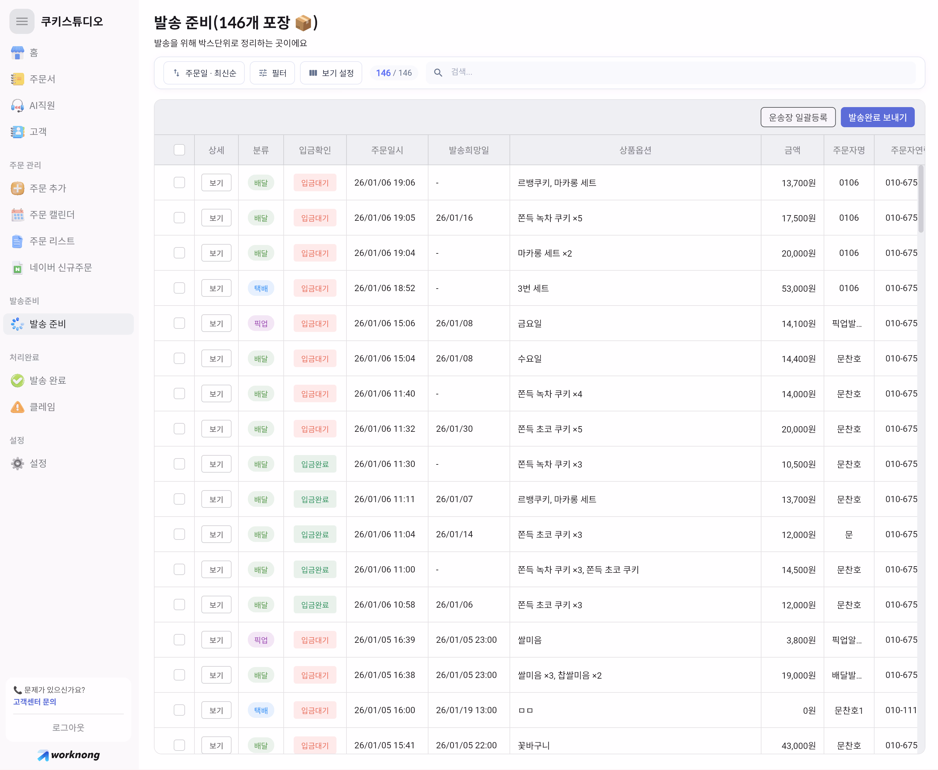 복잡한 주문 관리 워크농 하나로